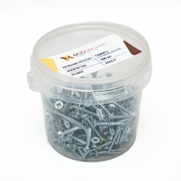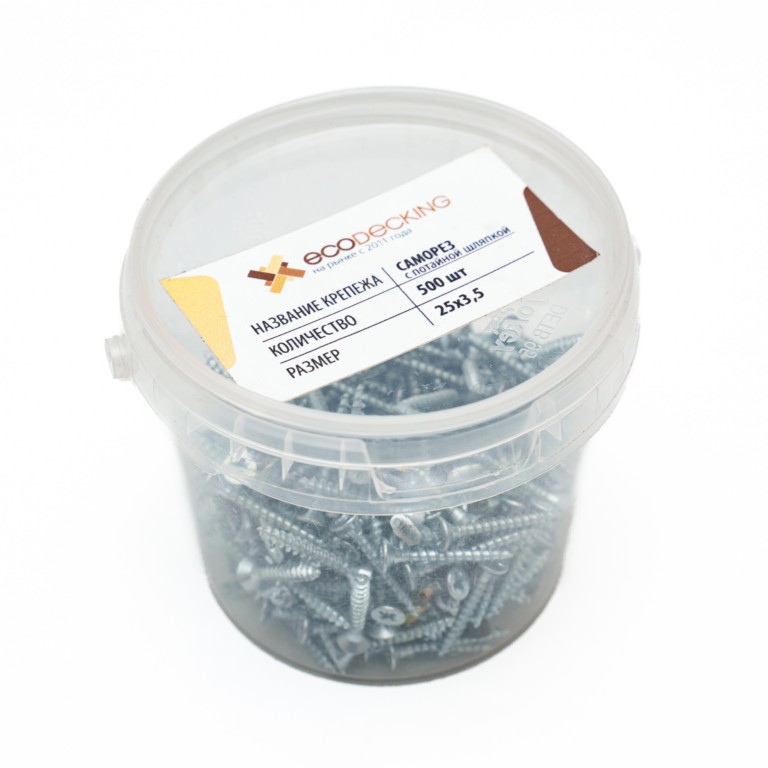 Саморез по дереву Экодекинг 3,5х25 это саморез предназначенный для монтажа клипс для террасной доски на деревянную подкладку. Изготавливается из оцинкованной стали. Обеспечивает прочное и долговечное крепление элементов.