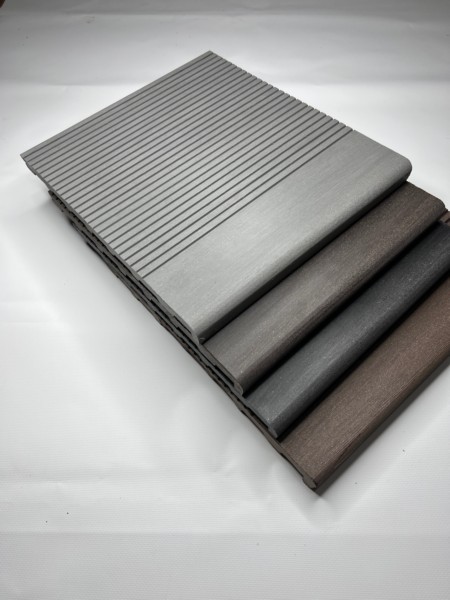 Ступень Ecodecking Некст полнотелая 343х22 это коммерческая ступень из ПНД. На основной поверхности доска имеет мелкий вельвет и брашировку. Полнотелая ступень не имеет ячеистой структуры и поэтому подходит для мест с высокой влажностью таких как бассейны, пирсы, причалы и т.д.